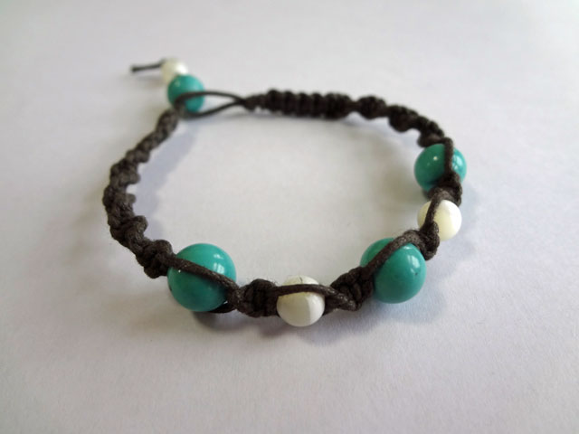 マクラメ編みの基本をマスターしながら、天然石をワックスコードで編み込んだ、流行のブレスレットに仕上げます。